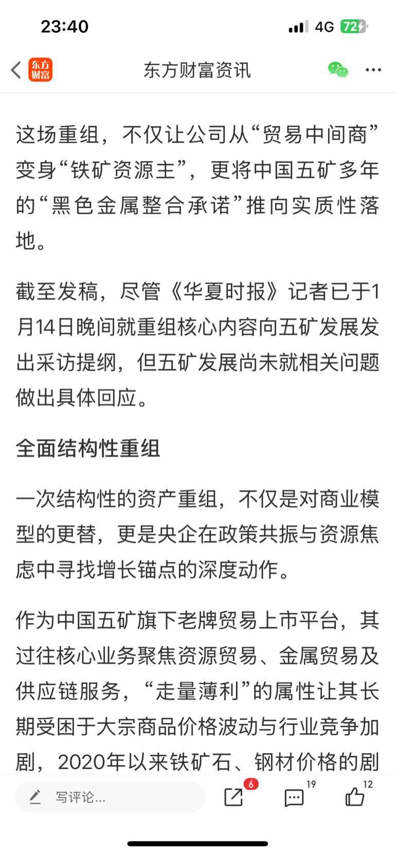 看下图形成了证据闭环,五矿发展吞并中国中冶和鲁中矿业优质矿产资源,置换出贸易主业