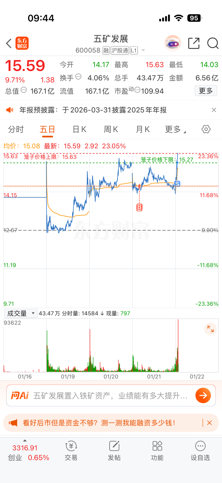 $五矿发展(SH600058)$ 昨天要不是为了买你我也不至于卖飞