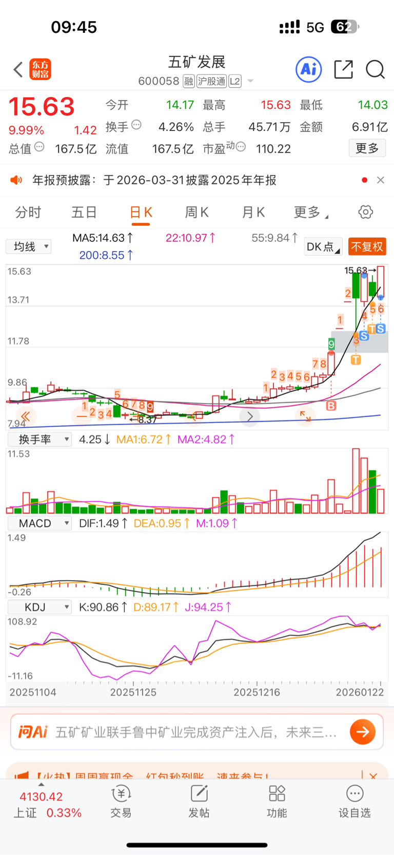$五矿发展(SH600058)$ 卖飞咯