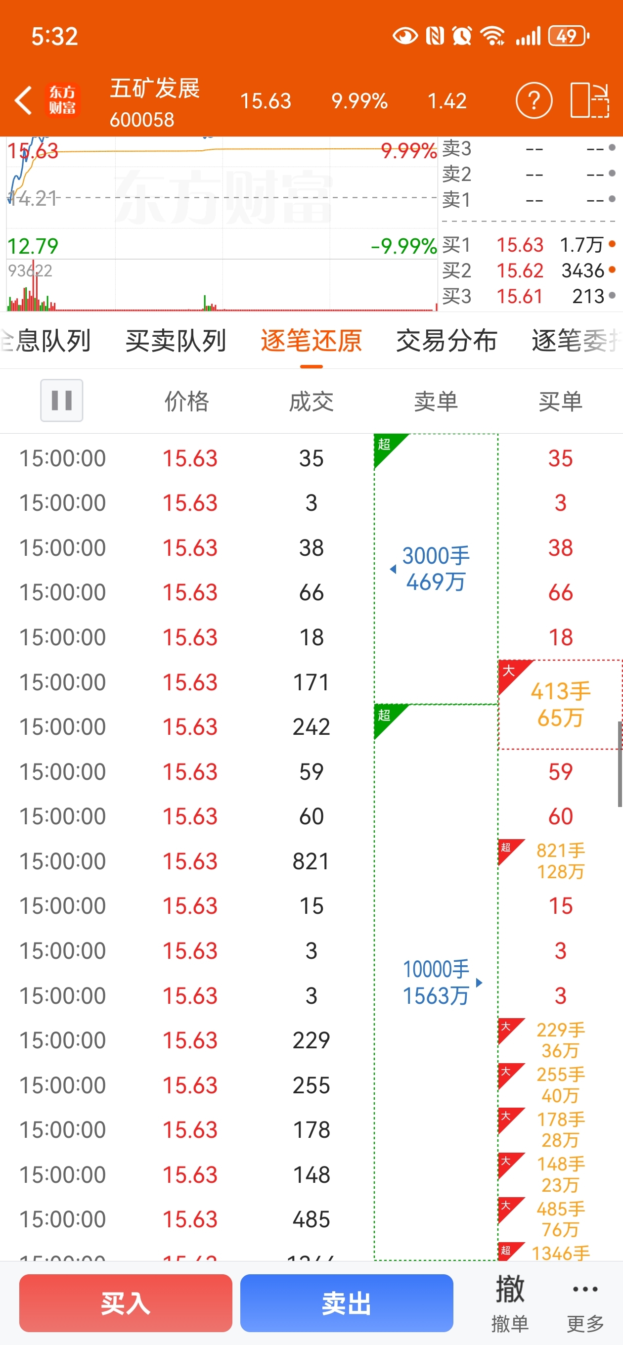 $五矿发展(SH600058)$ 竞价走了个万手大单,被排板的接了。