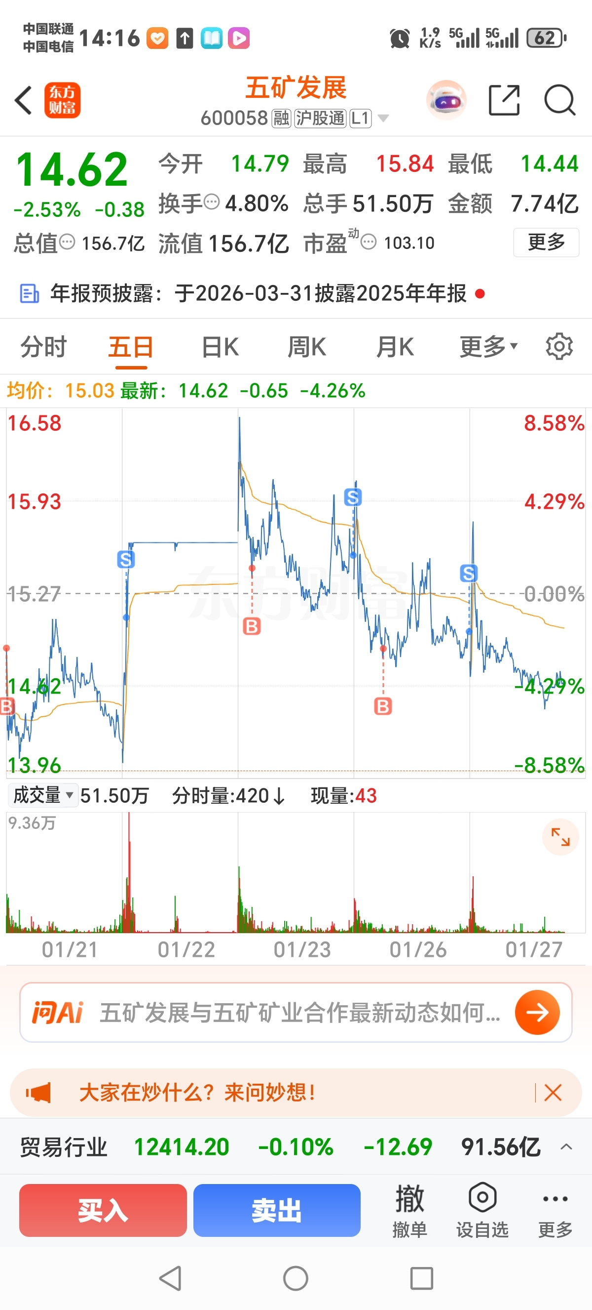 $五矿发展(SH600058)$ 卖卖卖,错过了有色行平