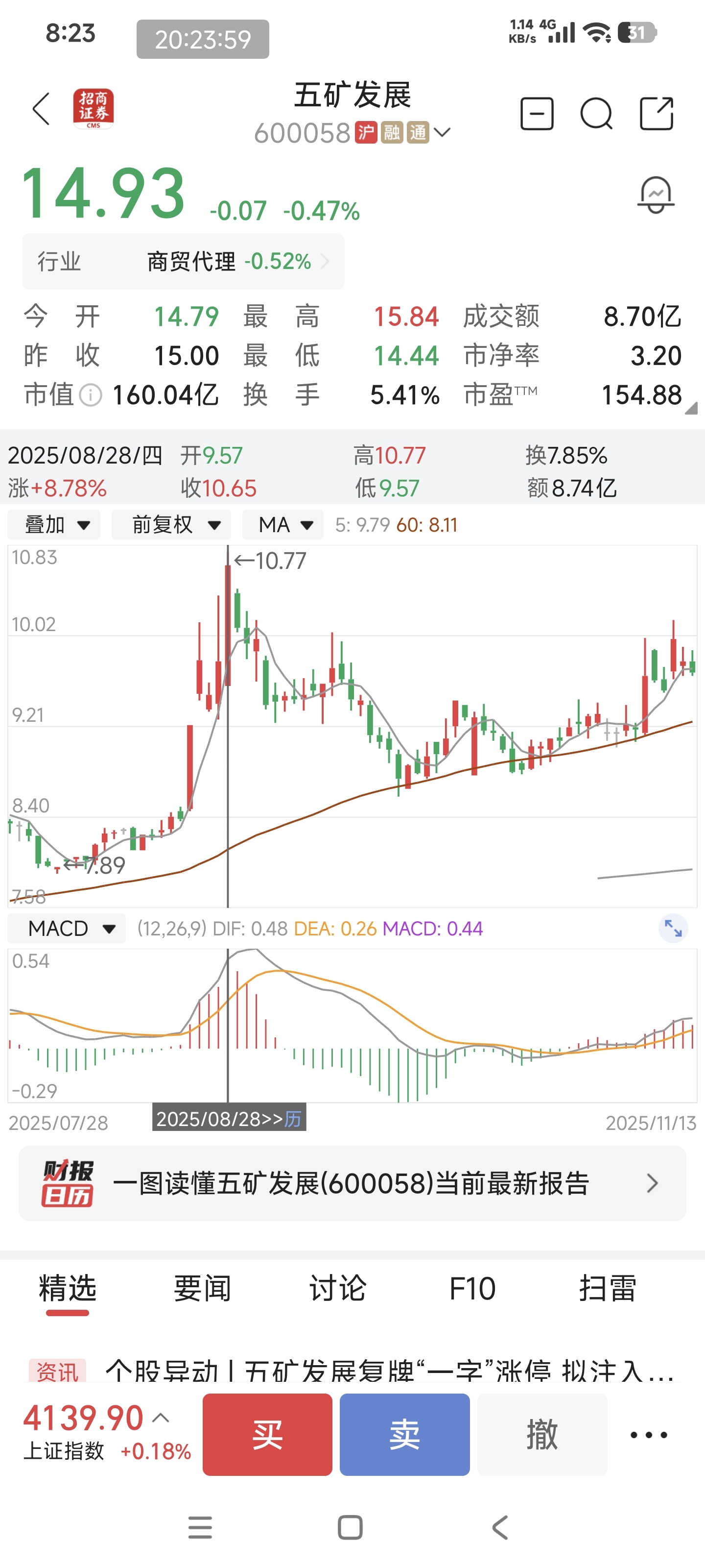14元震荡一到亮周,下探支撑位13元触底反弹