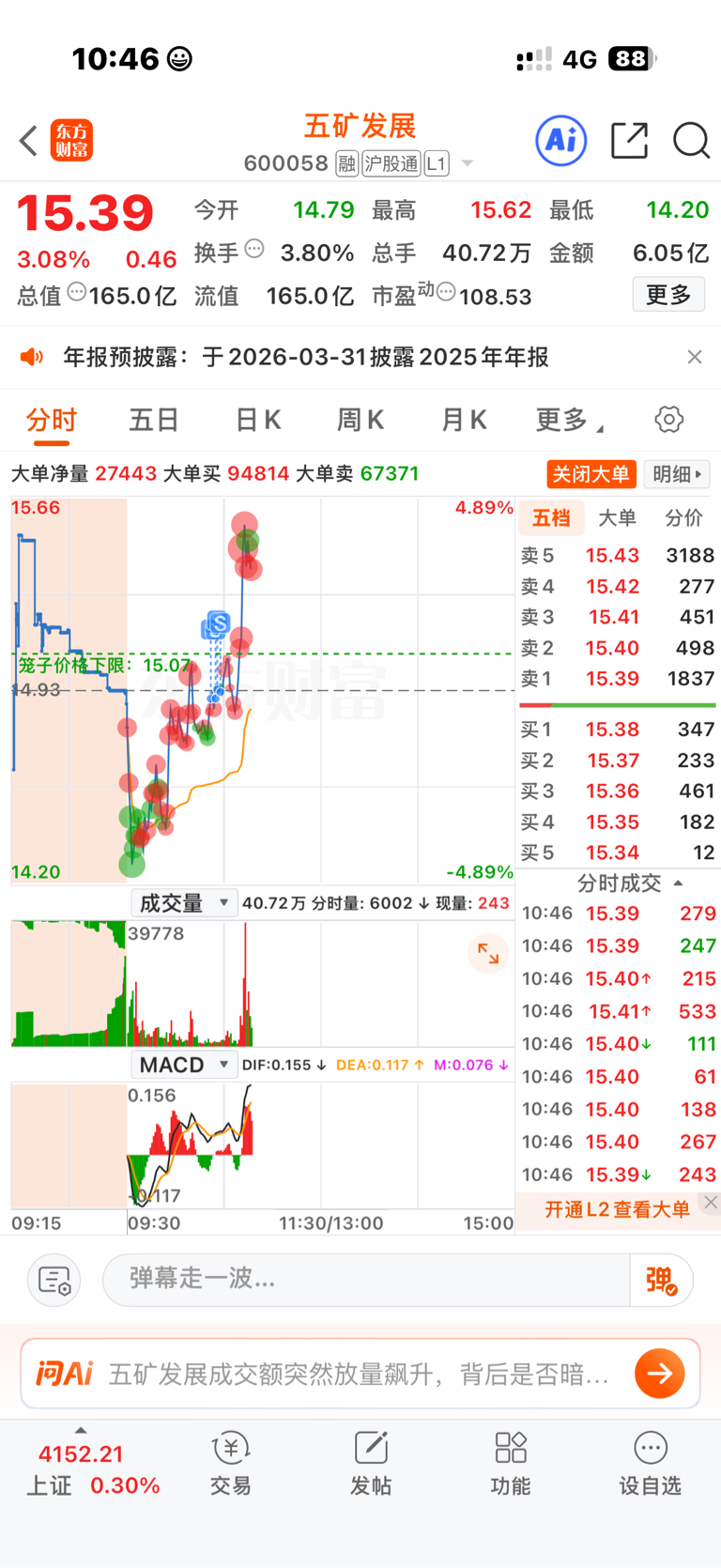 $五矿发展(SH600058)$ 卖了就拉