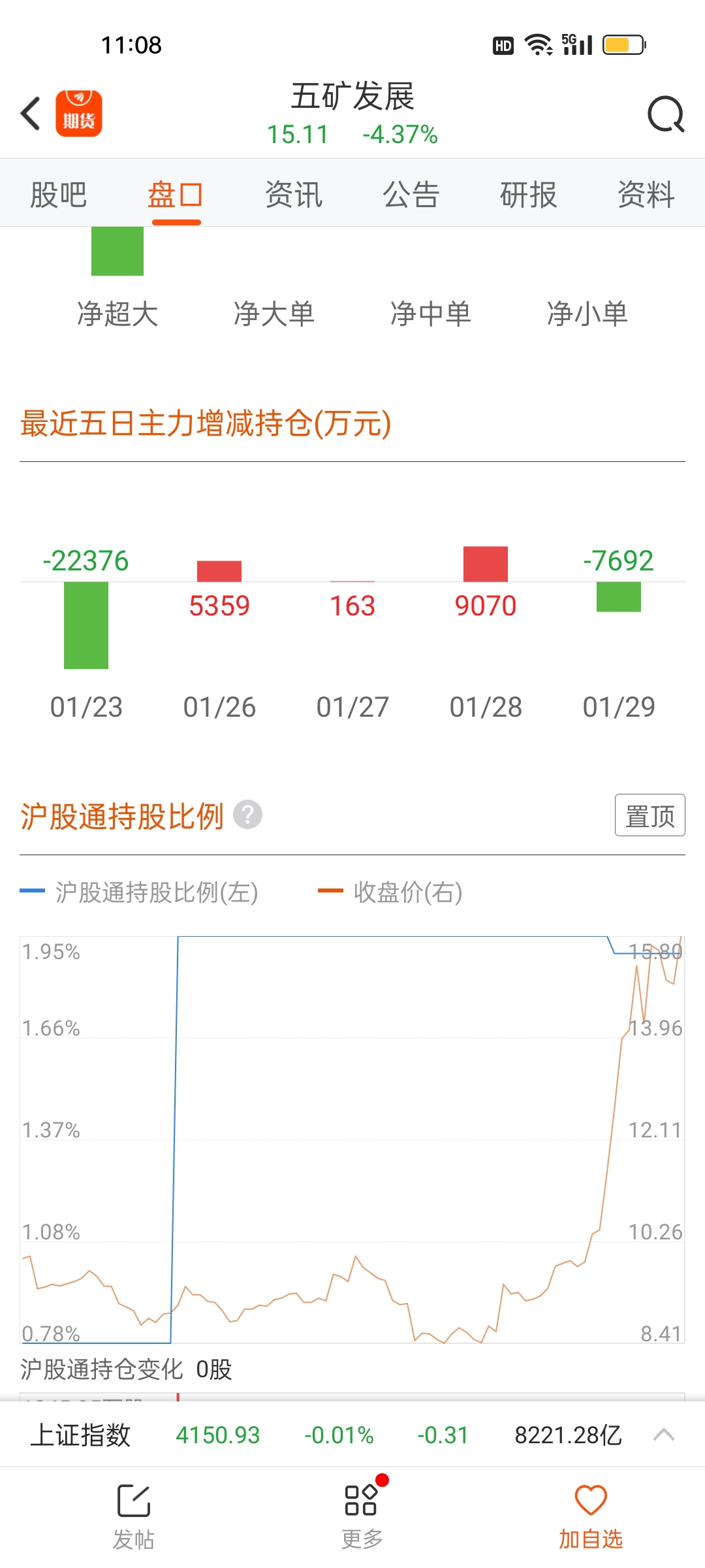 $五矿发展(SH600058)$ 主力跑了7000多万。