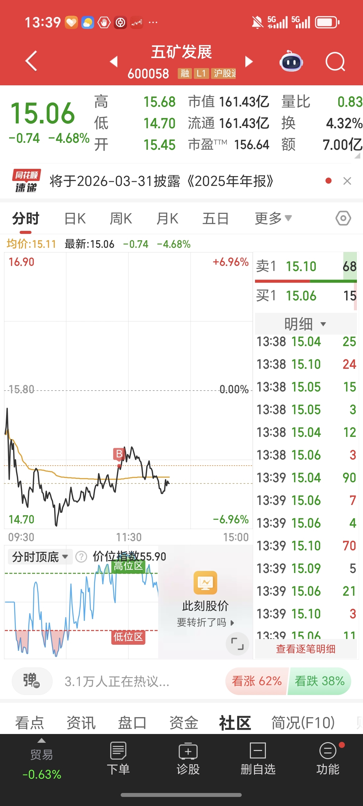 $五矿发展(SH600058)$ 我想抄底,主力抄家。