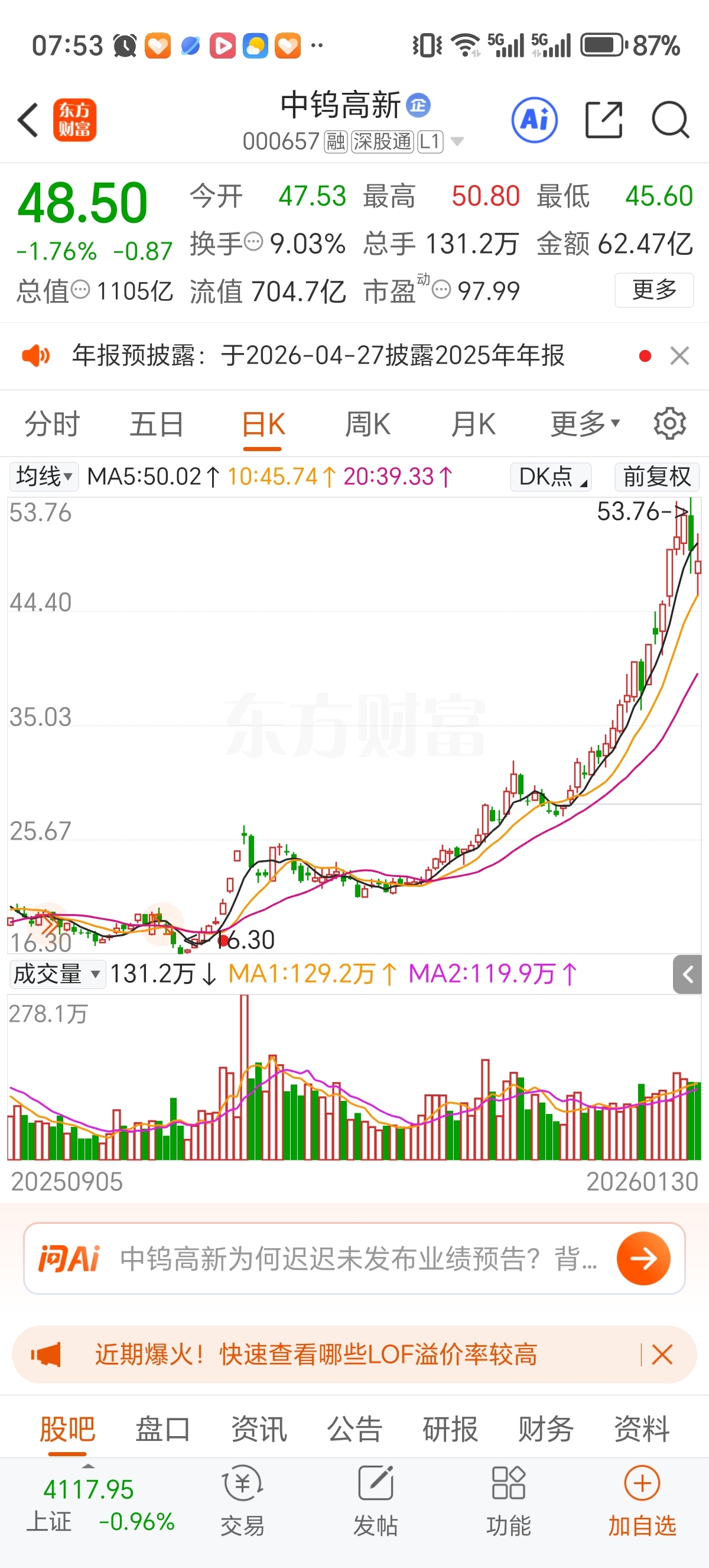 下一个中乌高新,五矿集团持股比例最高,上五十逻辑不变,主力借黄金大杀恐慌盘拿筹码