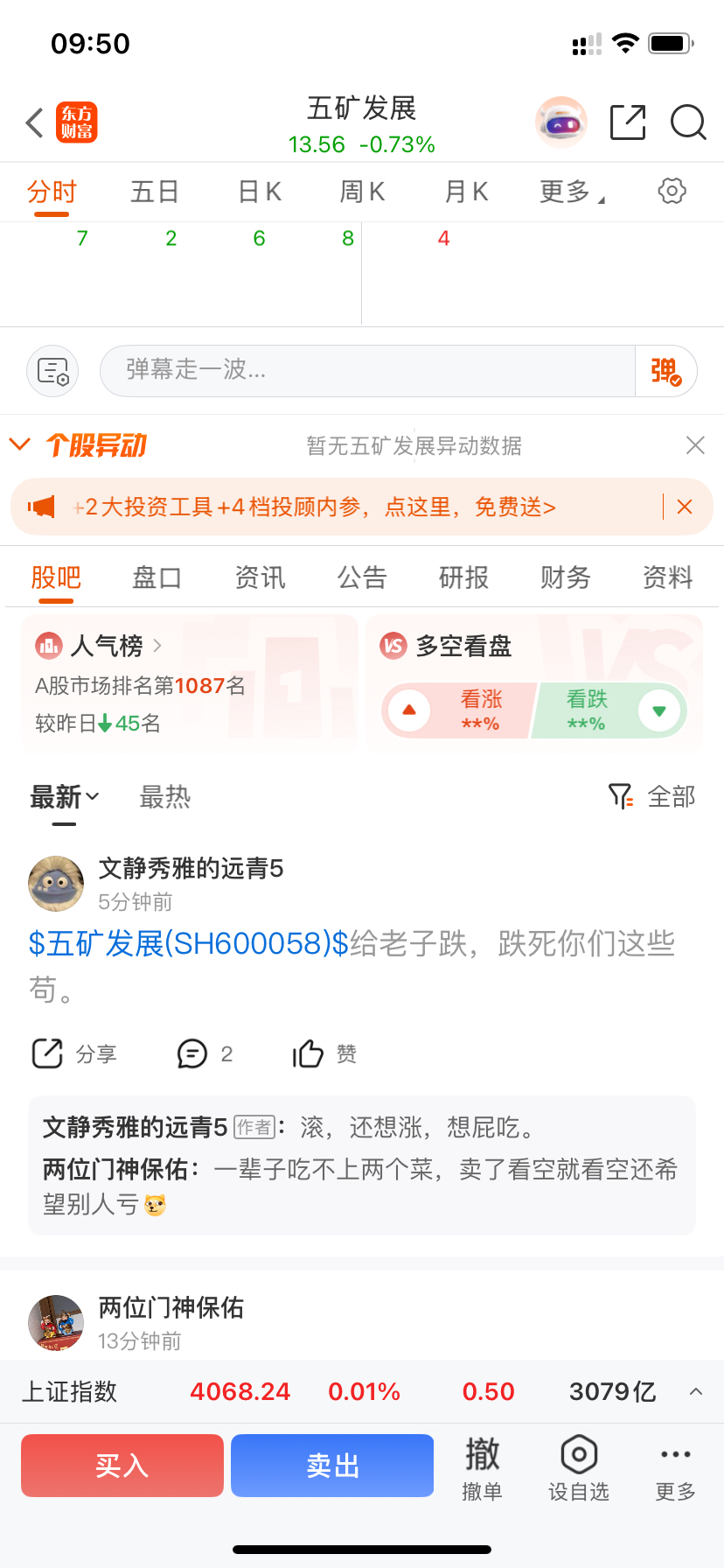 $五矿发展(SH600058)$ 虽然我讨厌那些无脑唱多50的但是我更讨厌这种自己亏了无能狂怒希望别人也亏的梭哈进仓了大不了多拿一阵子