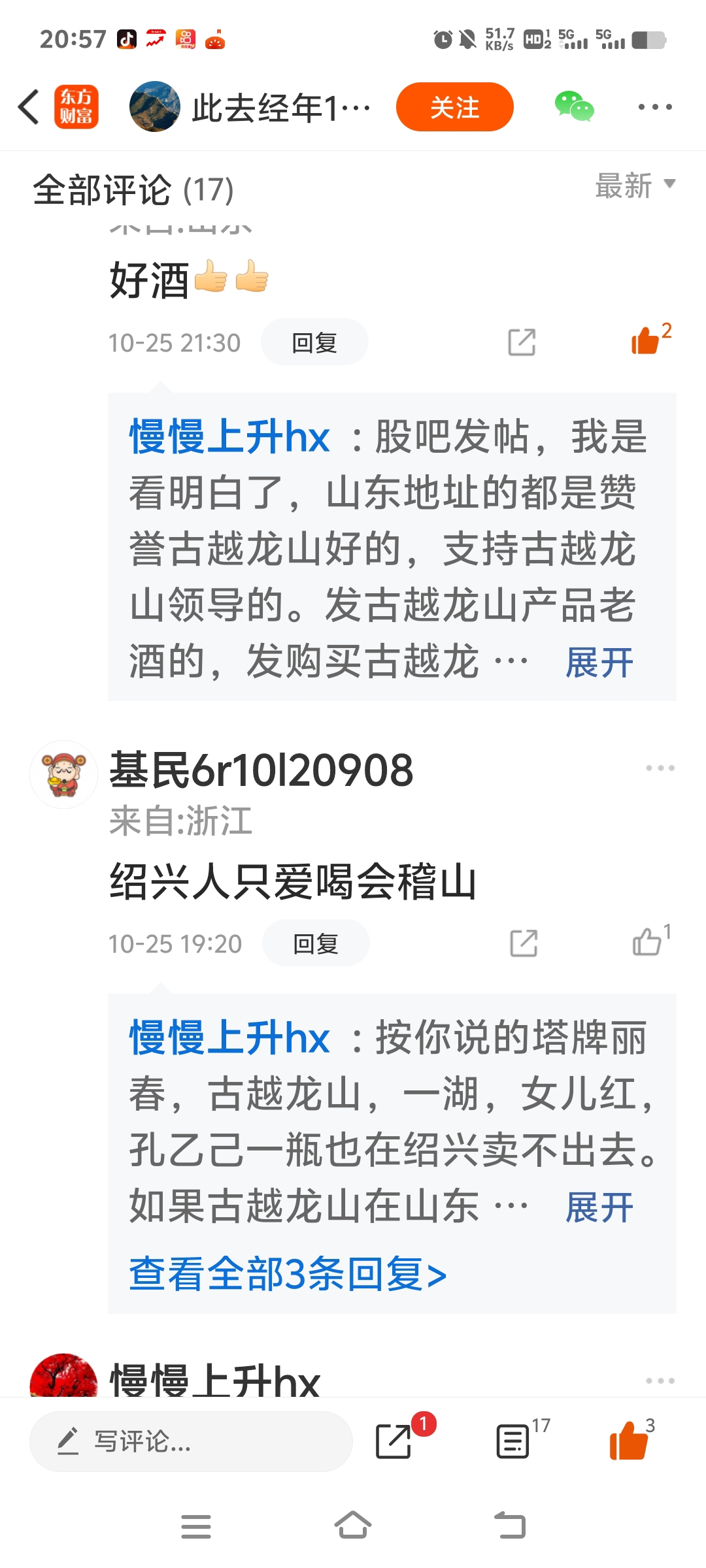 @张灯结彩zgq001如果会稽山的酒友仅仅只敢来古越龙山发帖评论,你不觉得你好怯