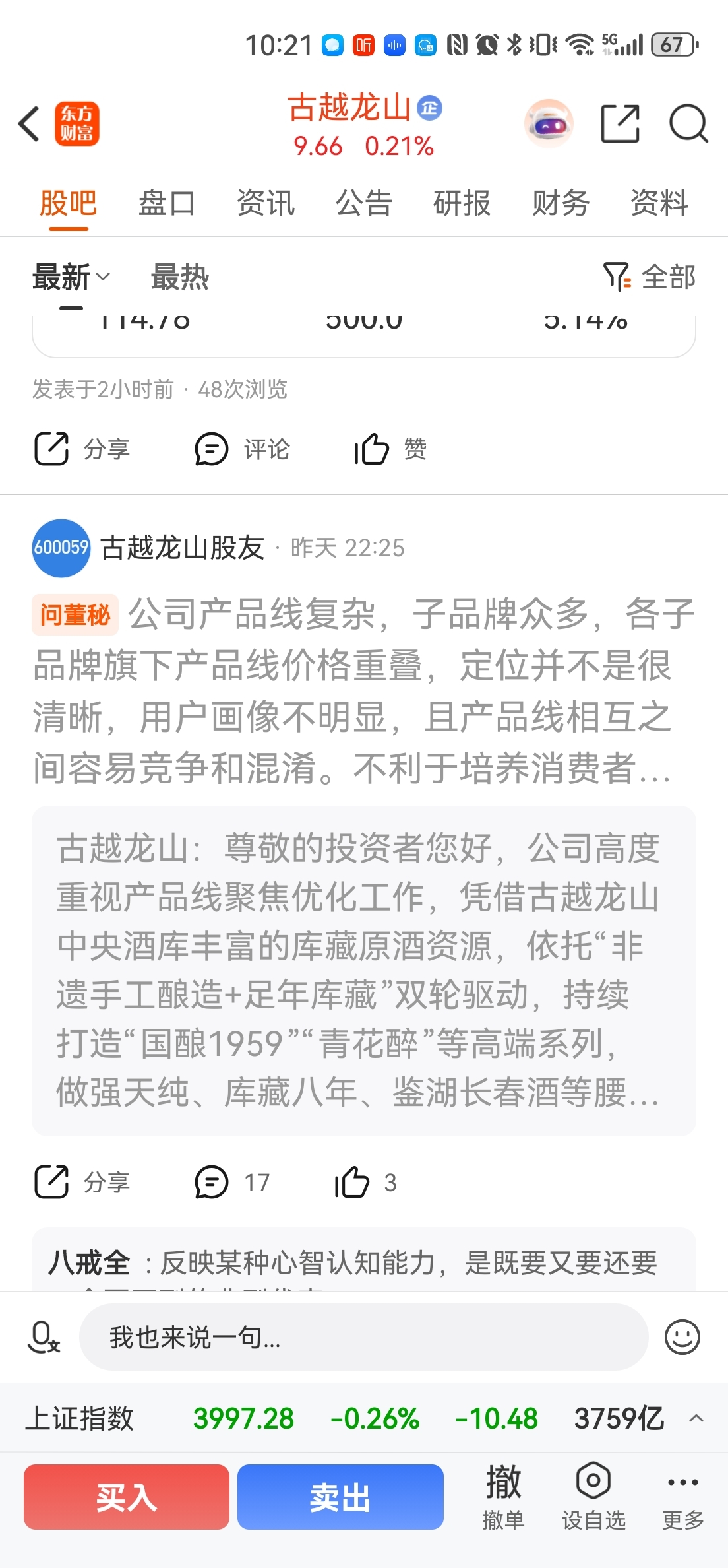 我觉得资本市场不是不认可古越龙山的品牌,而是不认可现在管理团队。现在说话的估计都