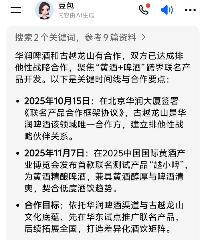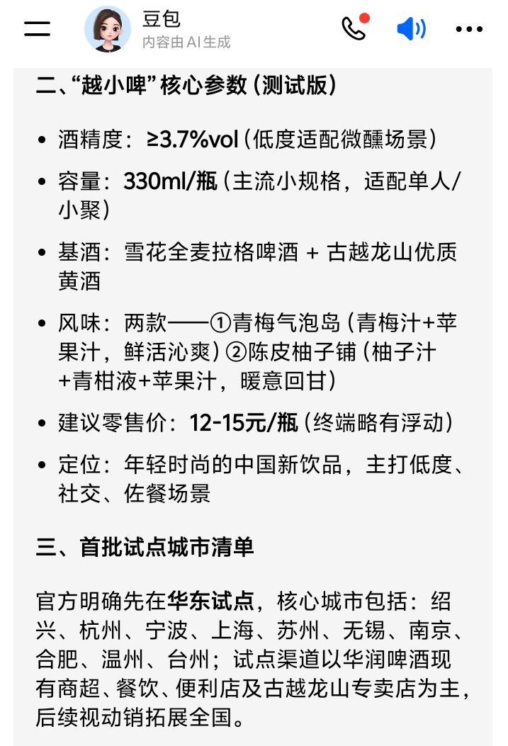 $古越龙山(SH600059)$ 豆包搜了下,越小啤,