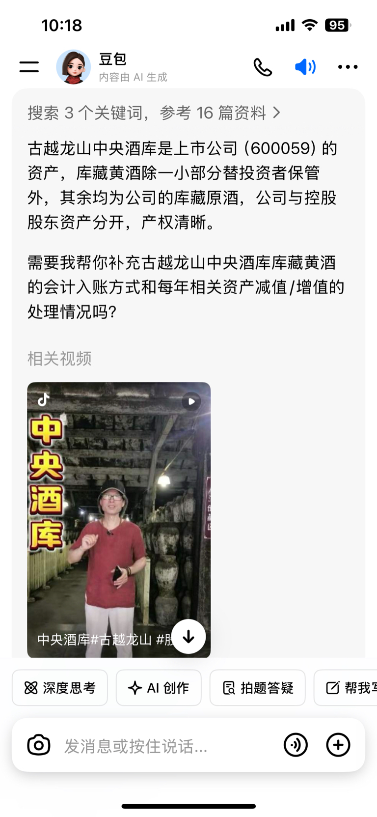 $古越龙山(SH600059)$ 随着原料成本,人工成本,土地成本的上涨,古越龙山中央酒库的库藏原酒的稀缺性、时间价值、文化内涵,重估价值巨大,且买且珍惜!