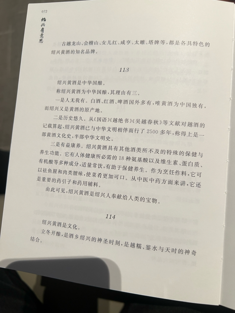 深圳机场偶见《绍兴有意思》,书中提到:绍兴黄酒是中华国酿,理由有三,一是人无我有