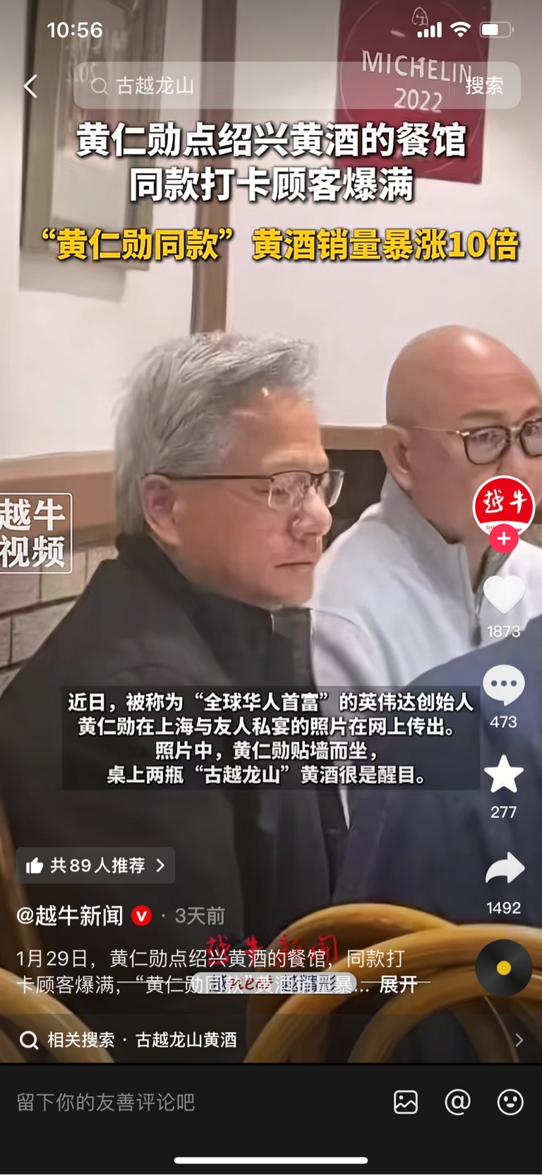 喝黄酒养生,科技大佬黄仁勋懂得养生,点名喝古越龙山,致使“黄仁勋同款黄酒”销量暴涨10倍
