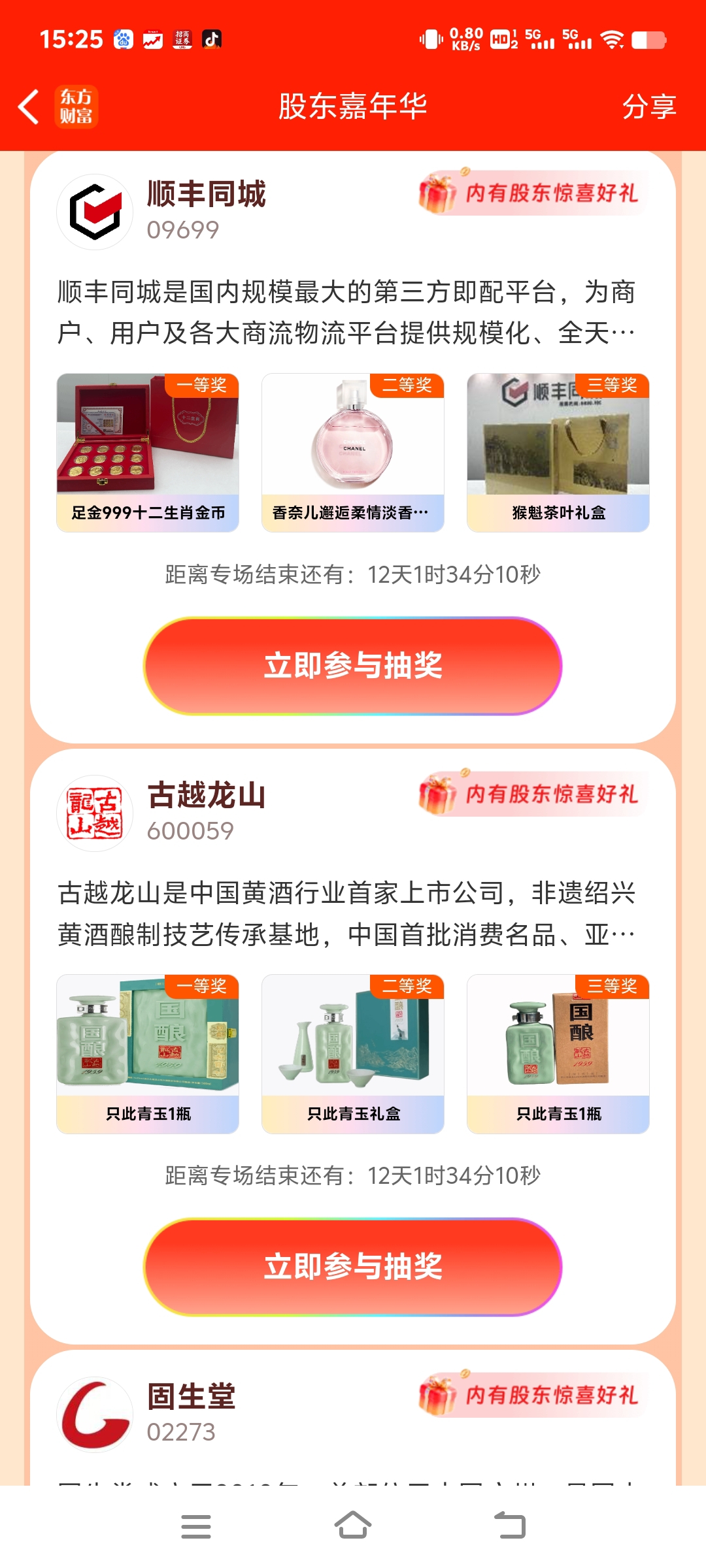 古越龙山东方财富嘉年华。古越龙山给各位股友送福利了。一等奖青玉500ml5个,二