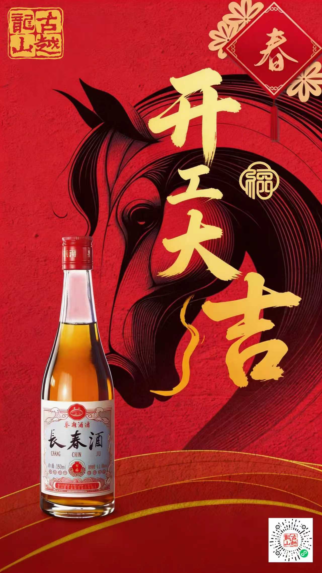 开工大吉,万事顺意!新的一年,愿你如这瓶长春酒般醇厚绵长,事业蒸蒸日上,生活甜甜美美。举杯共庆,开启新程!
