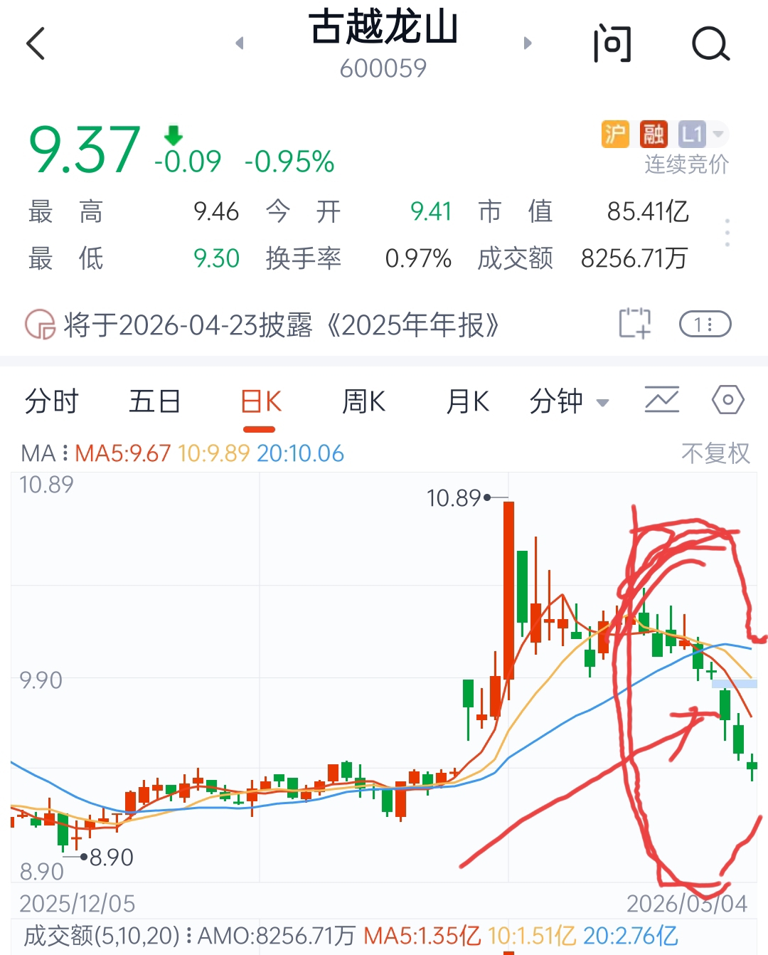 $古越龙山(SH600059)$ 九连阴,