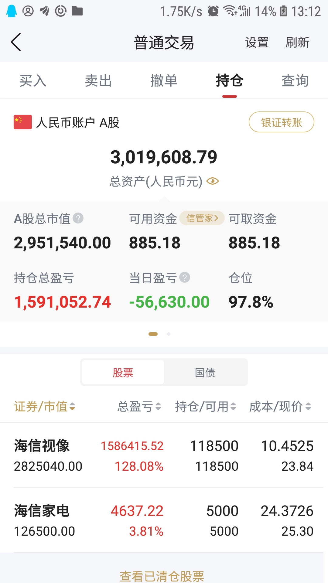 今天持仓海信视像,不怕下跌,不怕开水烫