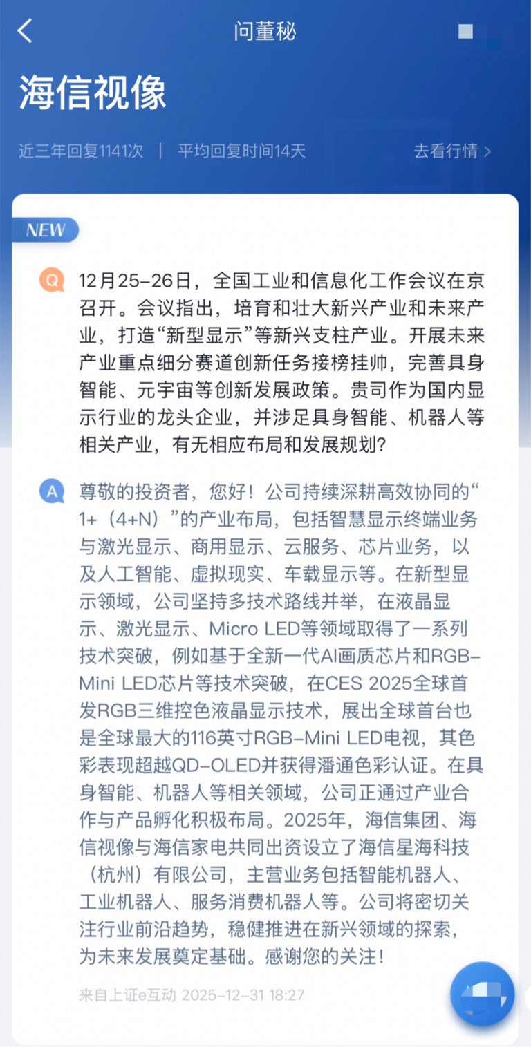 $海信视像(SH600060)$