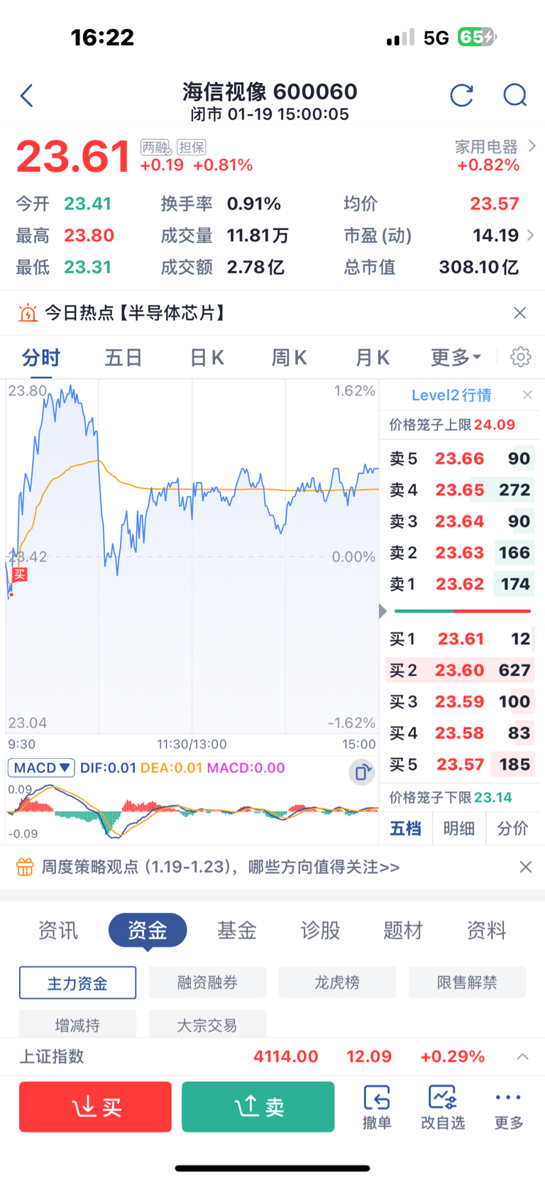 $海信视像(SH600060)$ 最底买入 明天吃大肉