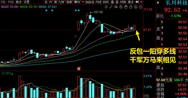 长川从K线形态来看,昨天这根K线走的非常关键,一根拔地而起的反包阳线,形成了弱转强的讯号,并且这根阳线上穿了多跟均线,正所谓一阳穿多线,千军万马来相见。目前短期反转形态已确立,今天大家早盘去观察集合竞价是否有异动量,如果有上车的机会,也会在留言区讲。