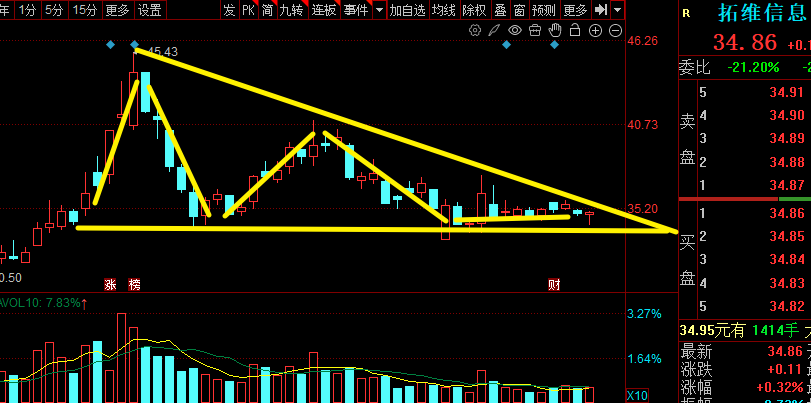 目前还在三角形整理区域走窄幅震荡,从K线形态来看,昨天收出了大长腿,单针探底的讯号,短期内突破平台上沿走加速行情的可能性越来越大,在车上的朋友拿好不动,还没上车的朋友,先加观察,等待股价突破压力位再上车也不迟。