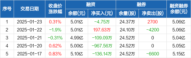华润双鹤:融资净偿还4.75万元,融资余额5.01亿元(01-23)