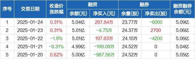 华润双鹤:融资净买入267.64万元,融资余额5.04亿元(01-24)