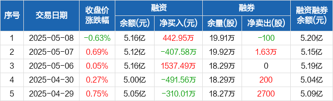 华润双鹤:融资净买入442.95万元,融资余额5.16亿元(05-08)