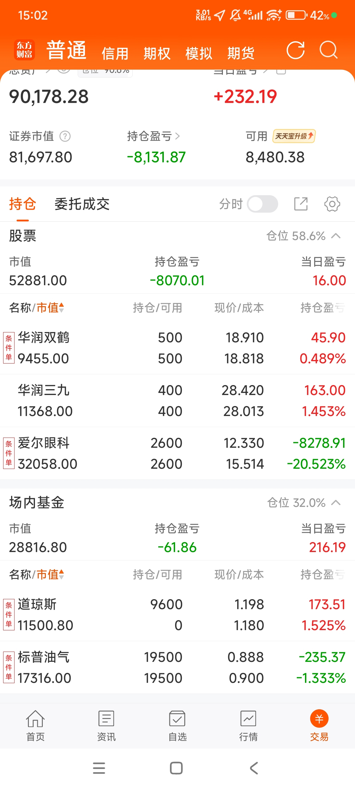 $华润双鹤(SH600062)$ $华润三九(SZ000999)$ $爱尔眼科(SZ300015)$ 今年可以到10万元吗?爱尔眼科持有700多天,解套就行。