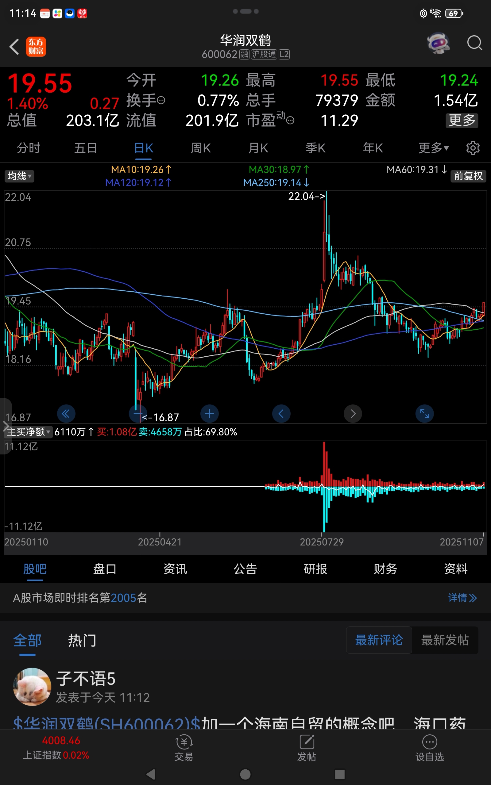 $华润双鹤(SH600062)$ 看看这走势,大盘站稳4000,你得突破前高才对。