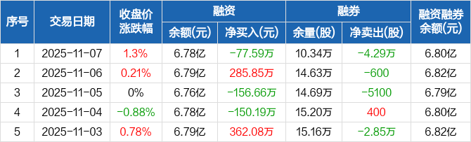 华润双鹤:融资净偿还77.59万元,融资余额6.78亿元(11-07)