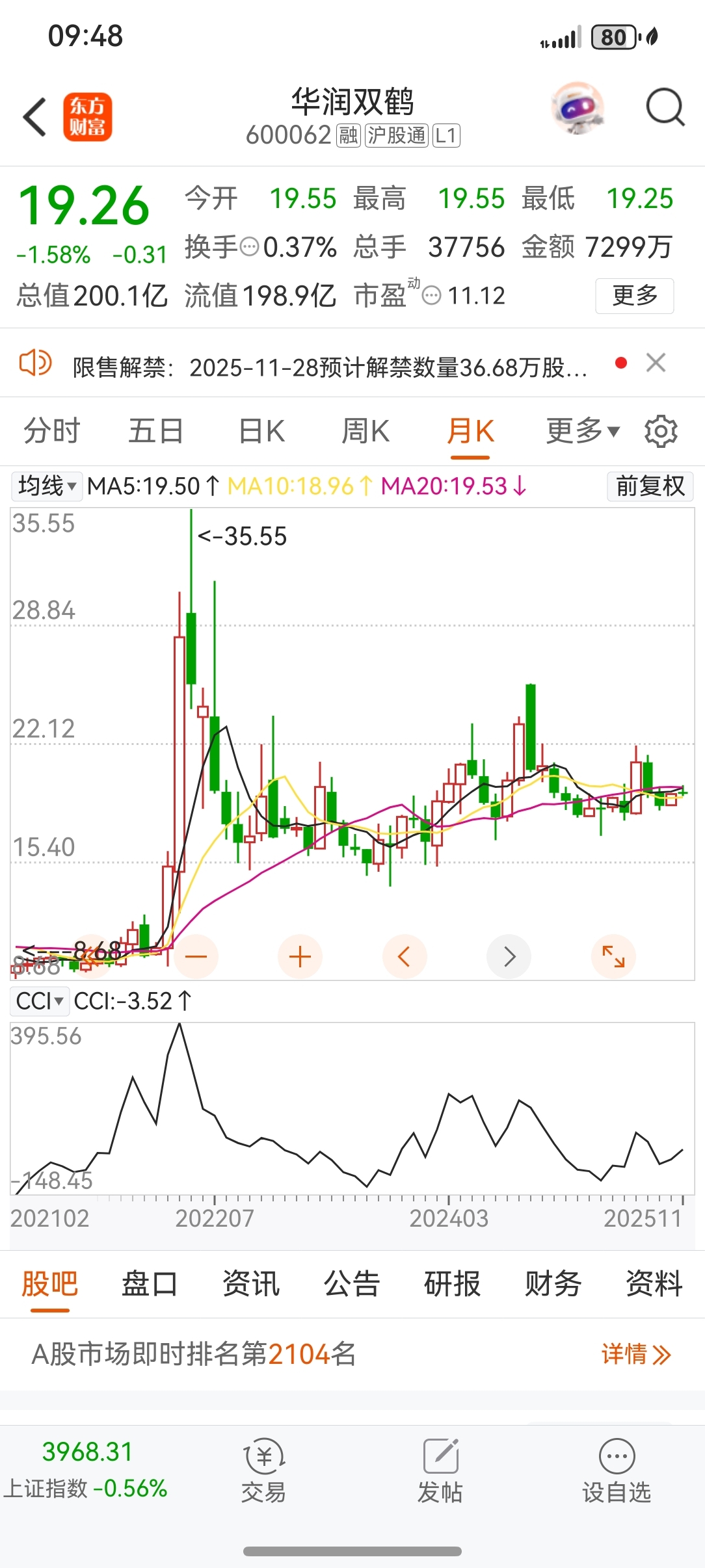 跟跌不跟涨的华润双鹤,大锅饭让挺留在大盘2600点,低价增发股票给员工,年薪百万