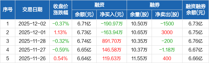 华润双鹤:融资净偿还190.97万元,融资余额6.71亿元(12-02)