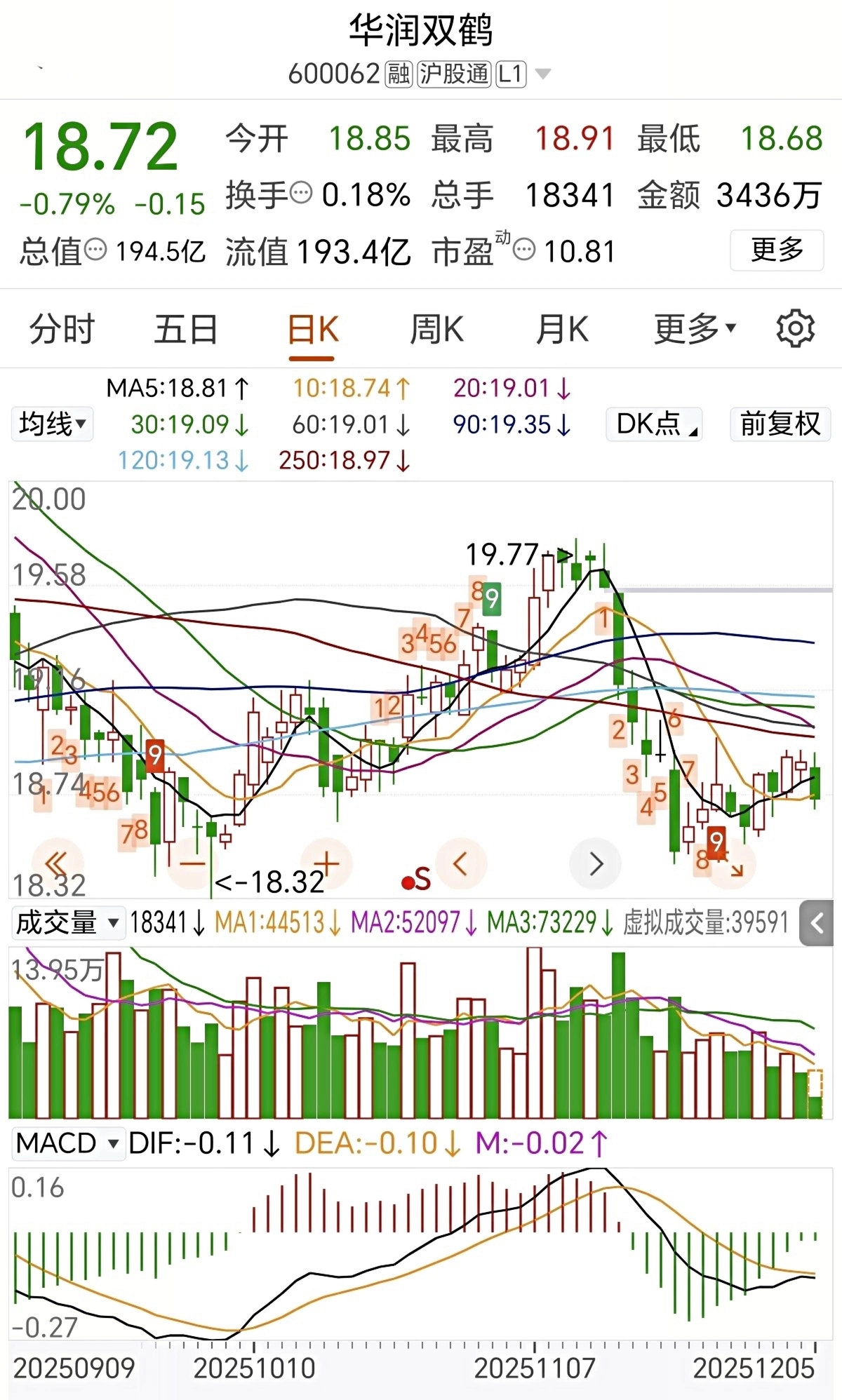 $华润双鹤(SH600062)$ 今天的下跌幅度有点大,如果日跌幅保持在千分之五左右,则月底可以形成日线与120分钟线底部背离,有可能在一月份进入日线上升周期,突破今年的22。但加速下跌会破坏钝化,形成新的量价新低,我们需要的价格创新低,成交量萎缩。今年是十年一遇的牛市,悄悄的插肩而过。