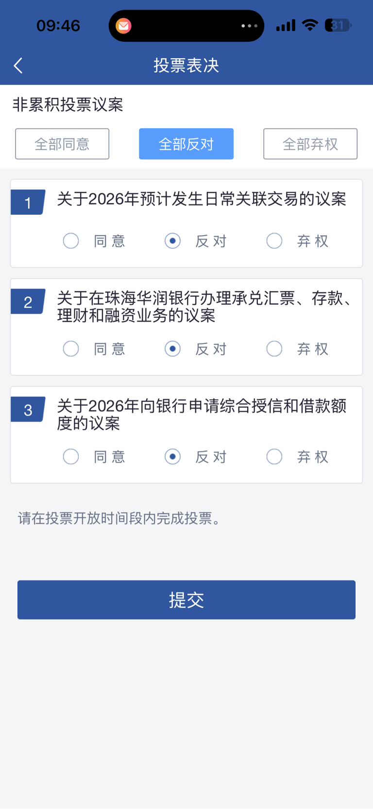 $华润双鹤(sh600062)$ 全部投反对票