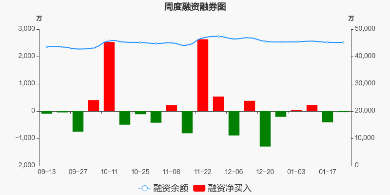 皖维高新本周(2025/01/20-2025/01/24)累计涨幅达0.26%,截至1月24日最新股价报收3.92元。从增量上来看,1月20日至1月24日融资买入交易规模1943.47万元,融资偿还规模1980.68万元,期内融资净偿还37.21万元。从存量上来看,截止1月26日,皖维高新融资融券余额4.52亿元,其中融资余额规模4.52亿元,融券余额规模40.81万元。