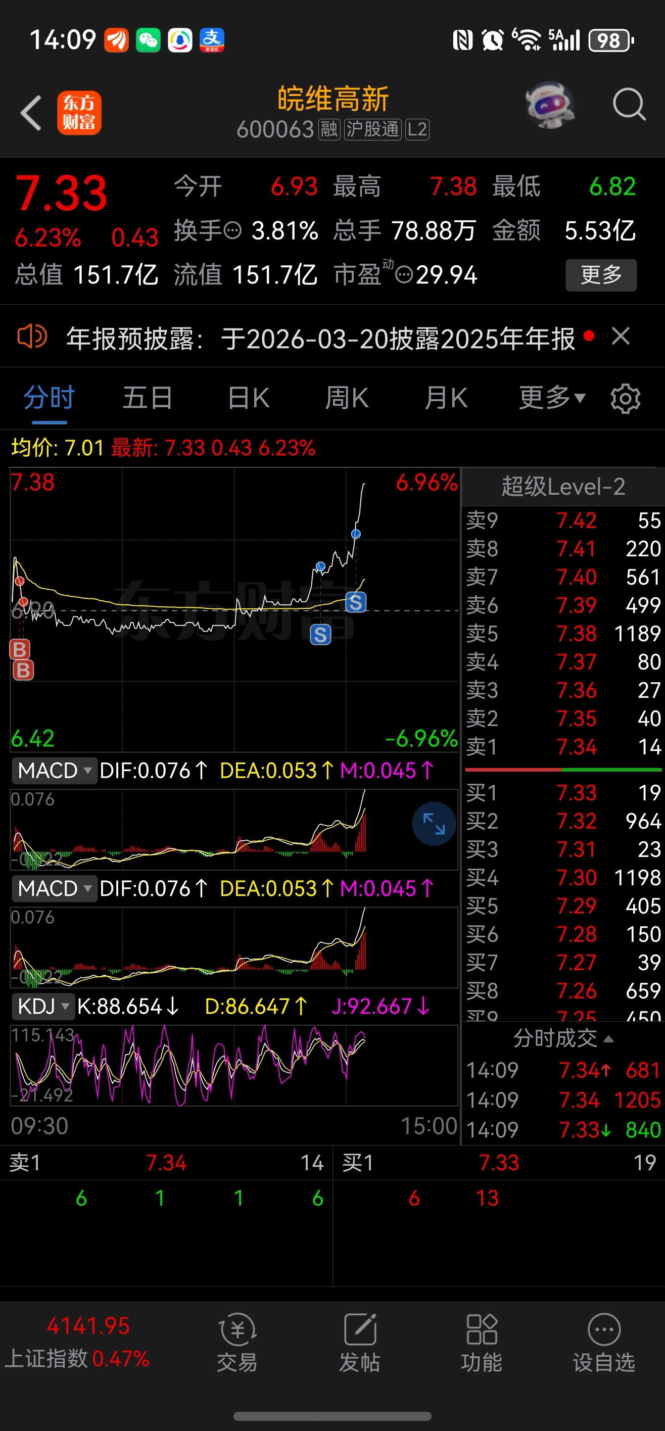 $皖维高新(SH600063)$ 早盘以为追高了,现在发现是卖飞了!