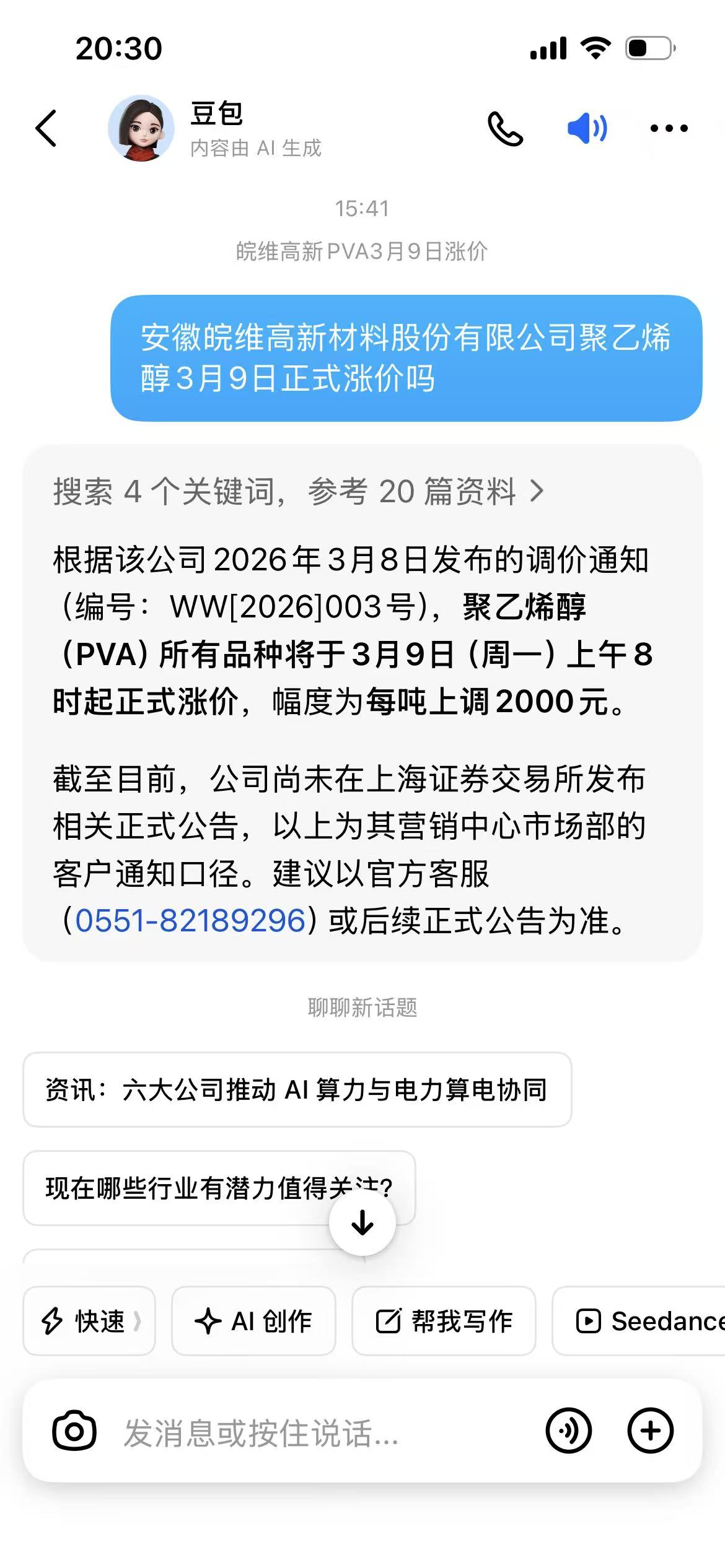 豆包说涨价是真的