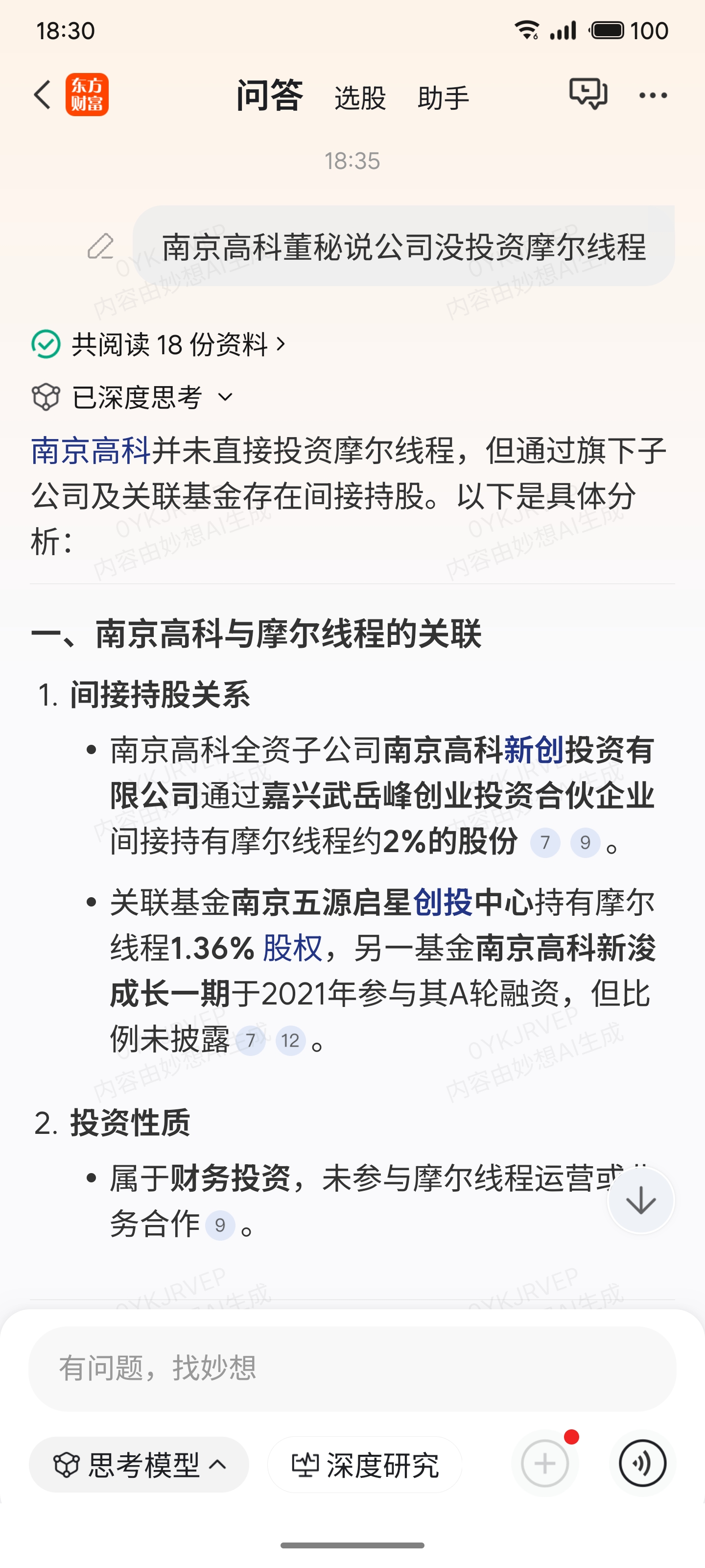 $南京高科(SH600064)$ 懂秘说没有投资摩尔线程,Ai又说有,什么情况