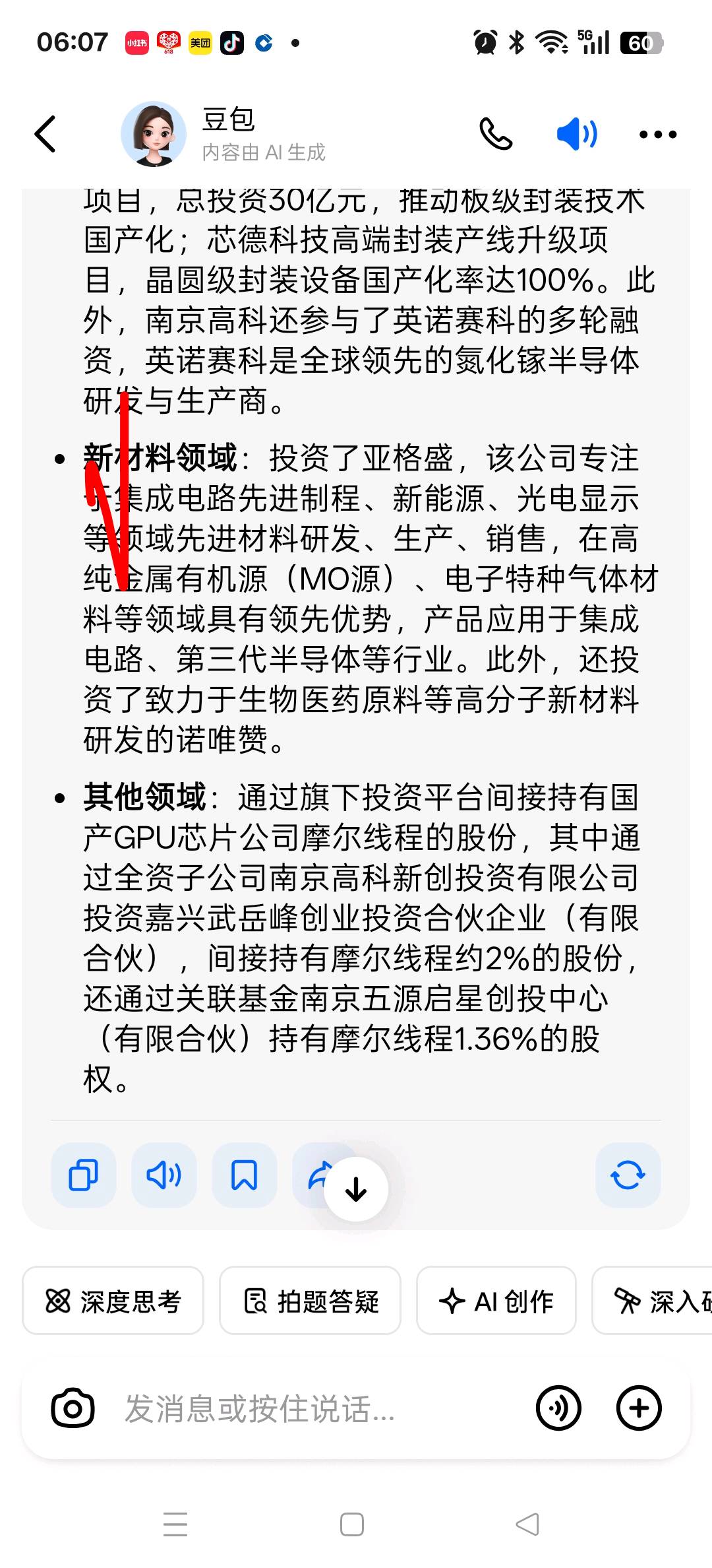 2. 投资行为:根据多家财经媒体和天眼查等企业信息查询平台的公开报道和记录,南京高科新创投资有限公司作为投资方,出现在了摩尔线程的早期融资名单中。这表明南京高科通过其子公司,对摩尔线程进行了财务投资。