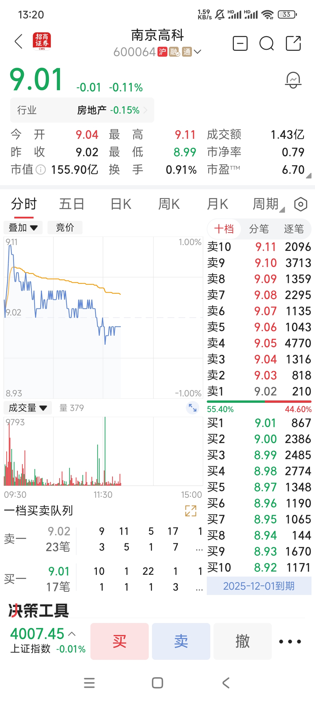 $南京高科(SH600064)$ 没什么压力!!