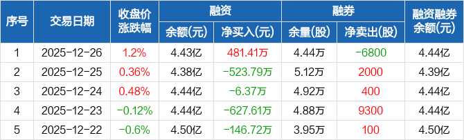 南京高科:融资净买入481.41万元,融资余额4.43亿元(12-26)
