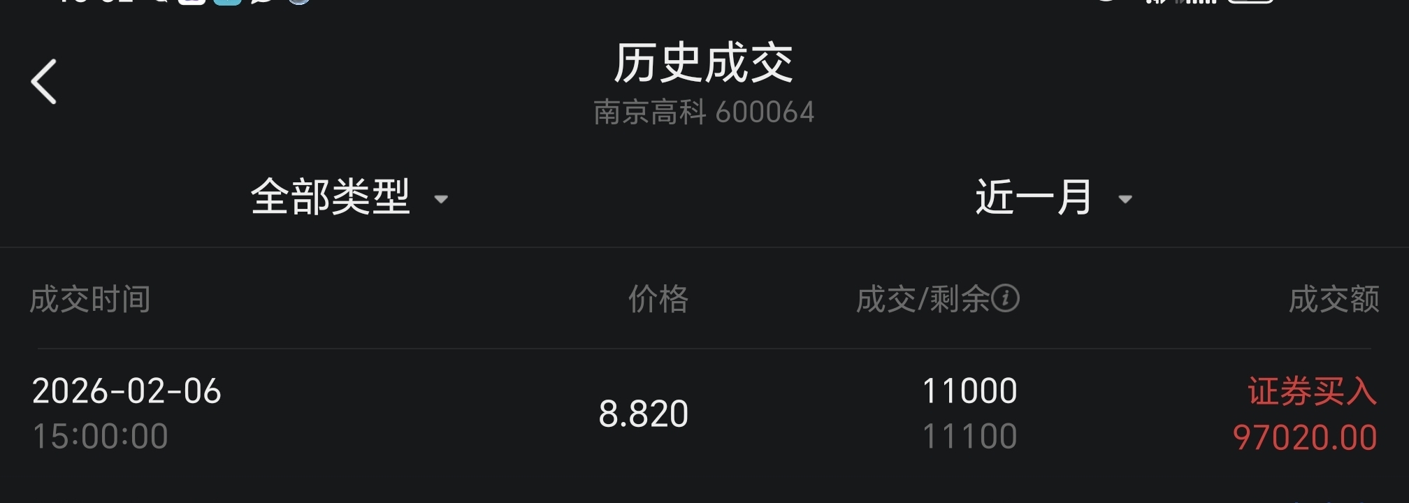 收盘挂单成交了
