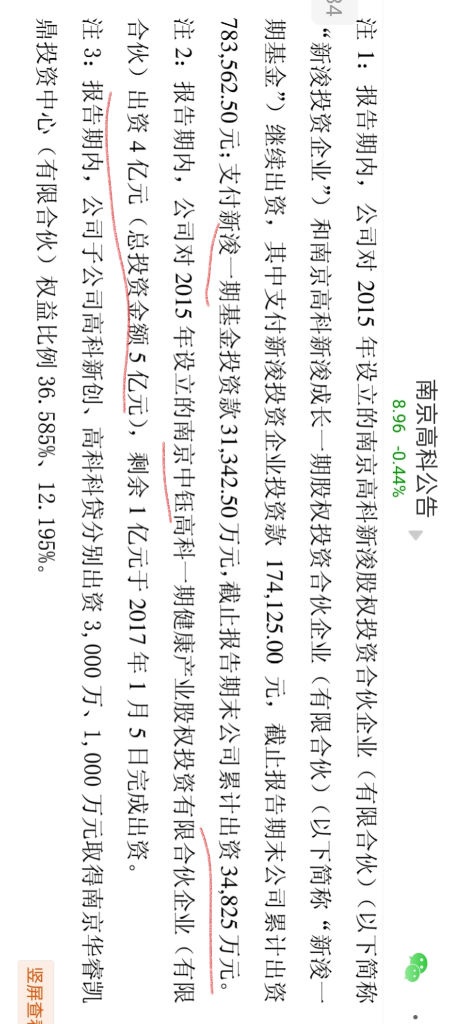 $南京高科(SH600064)$ 今天看2015年年报119页,当年投资中钰高科,新浚成长七、八亿,当年见笑(2600千万)
