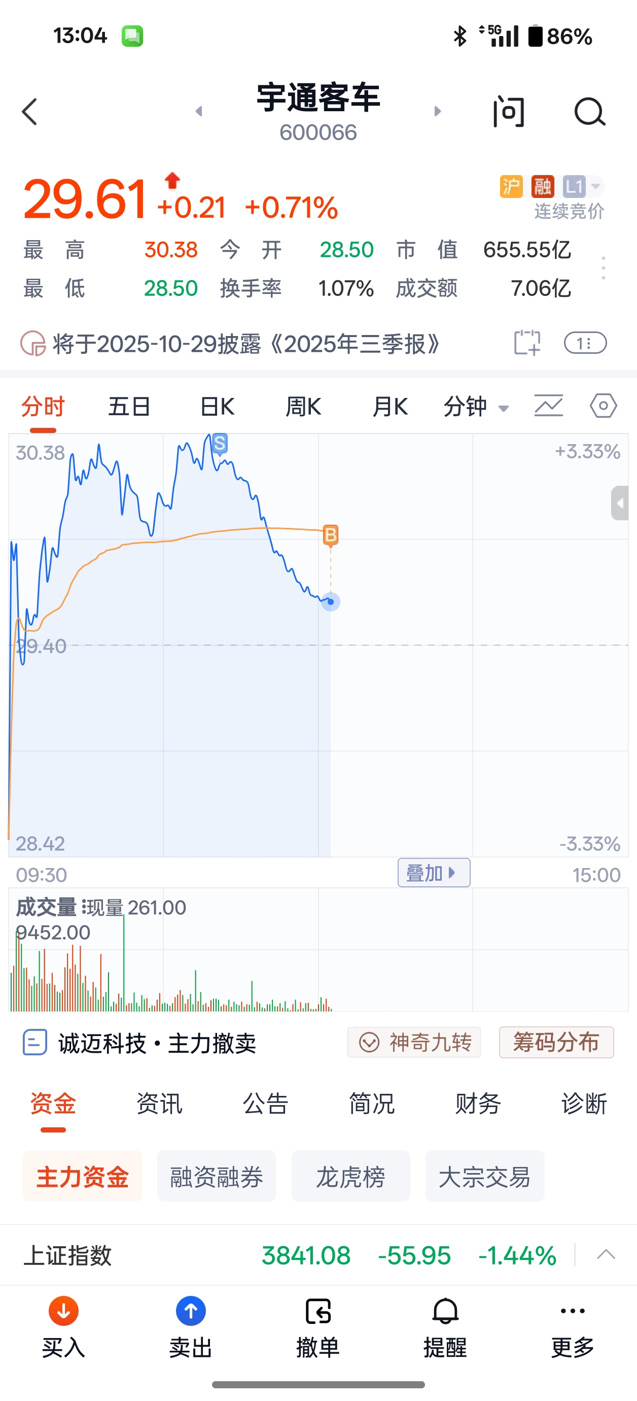 $宇通客车(SH600066)$  接回宇通,完成做T