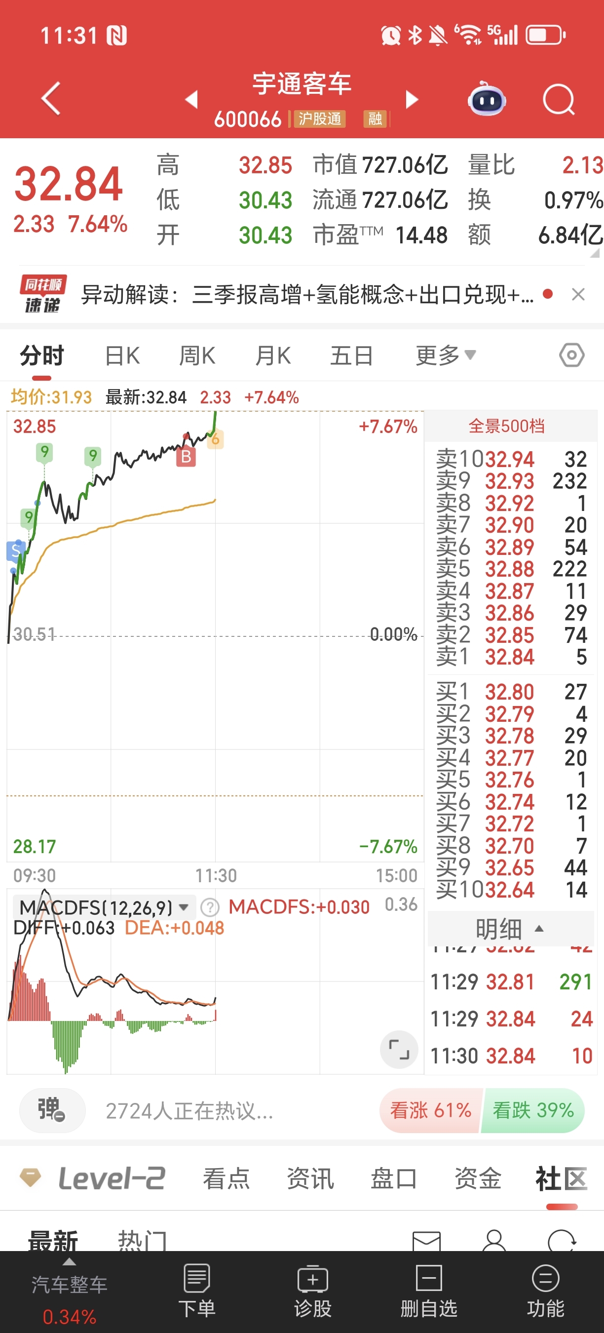 $宇通客车(SH600066)$ 我赌你今天涨停!
