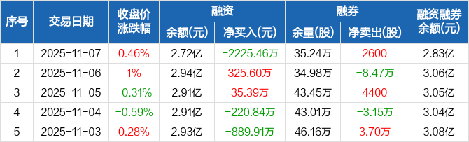 宇通客车:融资净偿还2225.46万元,融资余额2.72亿元(11-07)