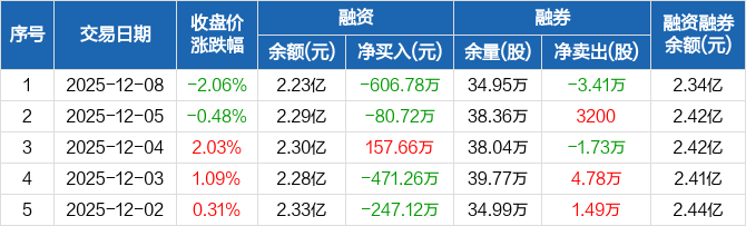 宇通客车:融资净偿还606.78万元,融资余额2.23亿元(12-08)