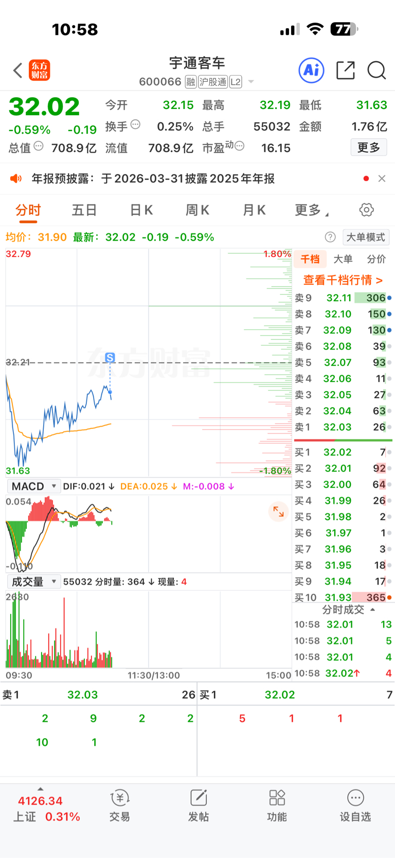 $宇通客车(SH600066)$ 清仓再见,做t空间都没