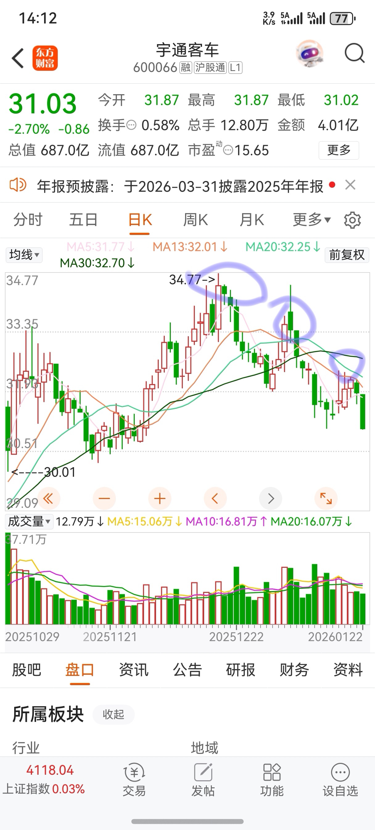 $宇通客车(SH600066)$ 第一次见他三段式下跌,短期别碰